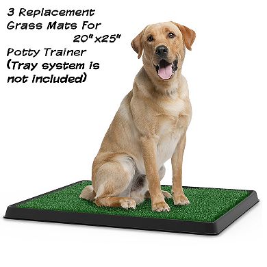 "Three-pack, easy-clean artificial grass mats sized to fit and turbo-charge Pet Adobe’s Trainer Tray System for clean, mess-free indoor/outdoor spaces."
