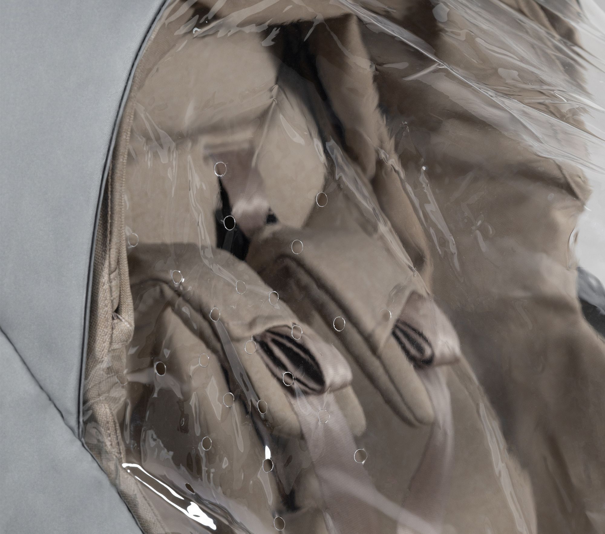 Traveling through an airport with a light rain shower, you protect the nesting seat and harness area while the cover’s pouch stores your handy small items for quick access.