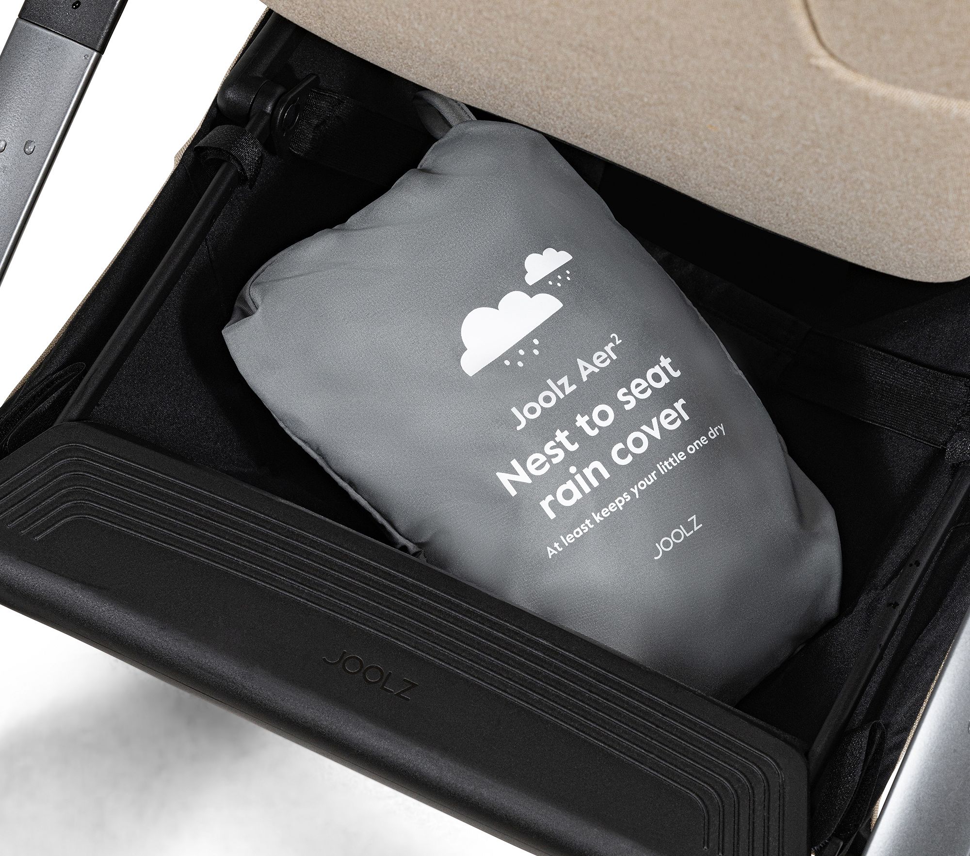 "All-weather, breathable raincover tailor-made for the Joolz Aer2 Nest to Seat, keeping baby dry and comfortable with easy on/off and built-in storage."