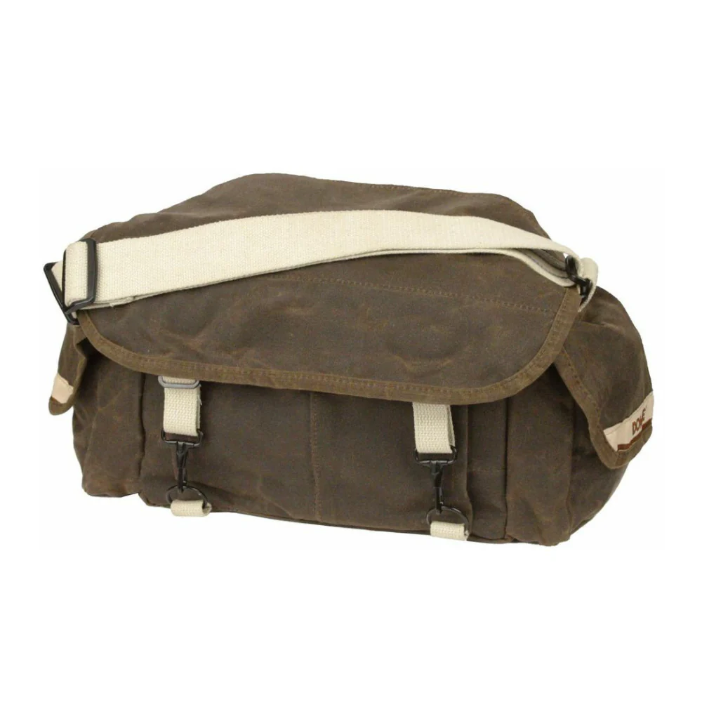 The Domke F-2 Ruggedwear Shoulder Bag is a durable canvas bag designed for photographers. It features a weathered oil-coated cotton canvas body, reinforced with a robust six-pocket and six-compartment layout for organized storage. The bag includes an adjustable, non-slip Gripper strap, a removable bottom stiffener, and a removable hand carry strap. It is designed for quick access to gear and is made in the USA, offering a timeless patina that ages with use. It accommodates 1-2 DSLRs, 4-6 lenses, and a flash, making it suitable for professional kit transport and on-the-go shooting.