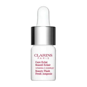 Producto cosmético de CLARINS destinado a polvos de arroz y tratamiento facial, asociado a la línea de Vitamina C y luminosidad. Descripción basada en la imagen de la botella compacta con gotero y etiqueta en rojo que sugiere un complejo de Vitamina C para tratamiento de suavidad y luminosidad de la piel.