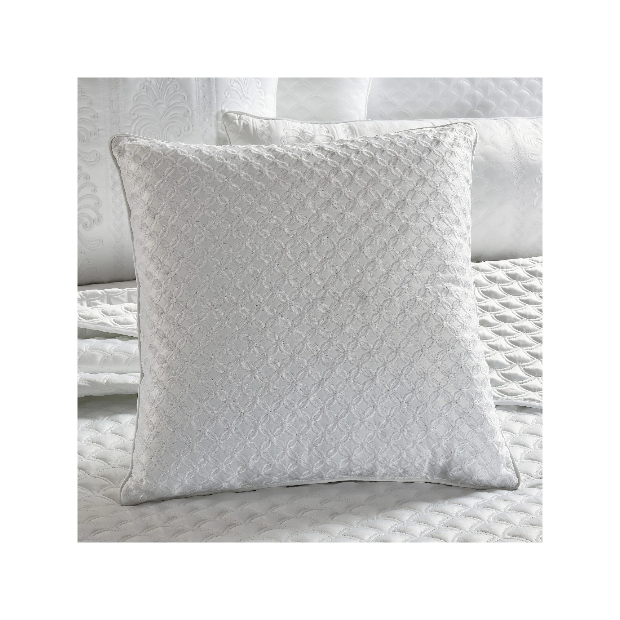 Show off your inner designer with this stylish Five Queens Court Lincoln 16" Square Throw Pillow. Features a tonal embossed/floral motif on a light gray textured fabric with a tailored border and structured fill, measuring 16" x 16". Polyester construction with spot clean care.