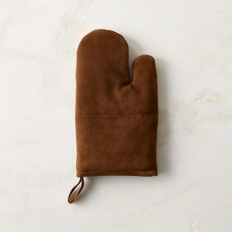 "Luxuriously soft Ambra brown suede oven mitt that pairs elevated texture with practical heat protection for stylish, safe kitchen moments."