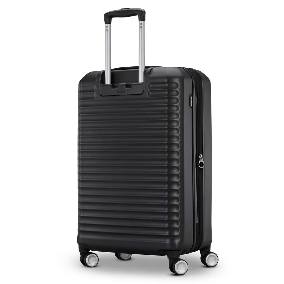 The American Tourister Stratum 3.0 Medium checked spinner suitcase is the sweet spot between packing space and easy handling for weeklong trips. It features a RightHeight retractable handle and smooth-gliding, wide-set dual spinner wheels for confident maneuvering, plus a durable hardside shell that stands up to travel wear and tear. Stay organized with an interior U-shaped mesh zippered divider, a zippered pocket for small essentials, and elastic cross straps to keep clothes in place and wrinkle-free. With an expandable capacity (1.5 in), it’s ready for those last-minute extras—just note airline carry-on size and weight rules vary, and overstuffed bags may not be accepted.