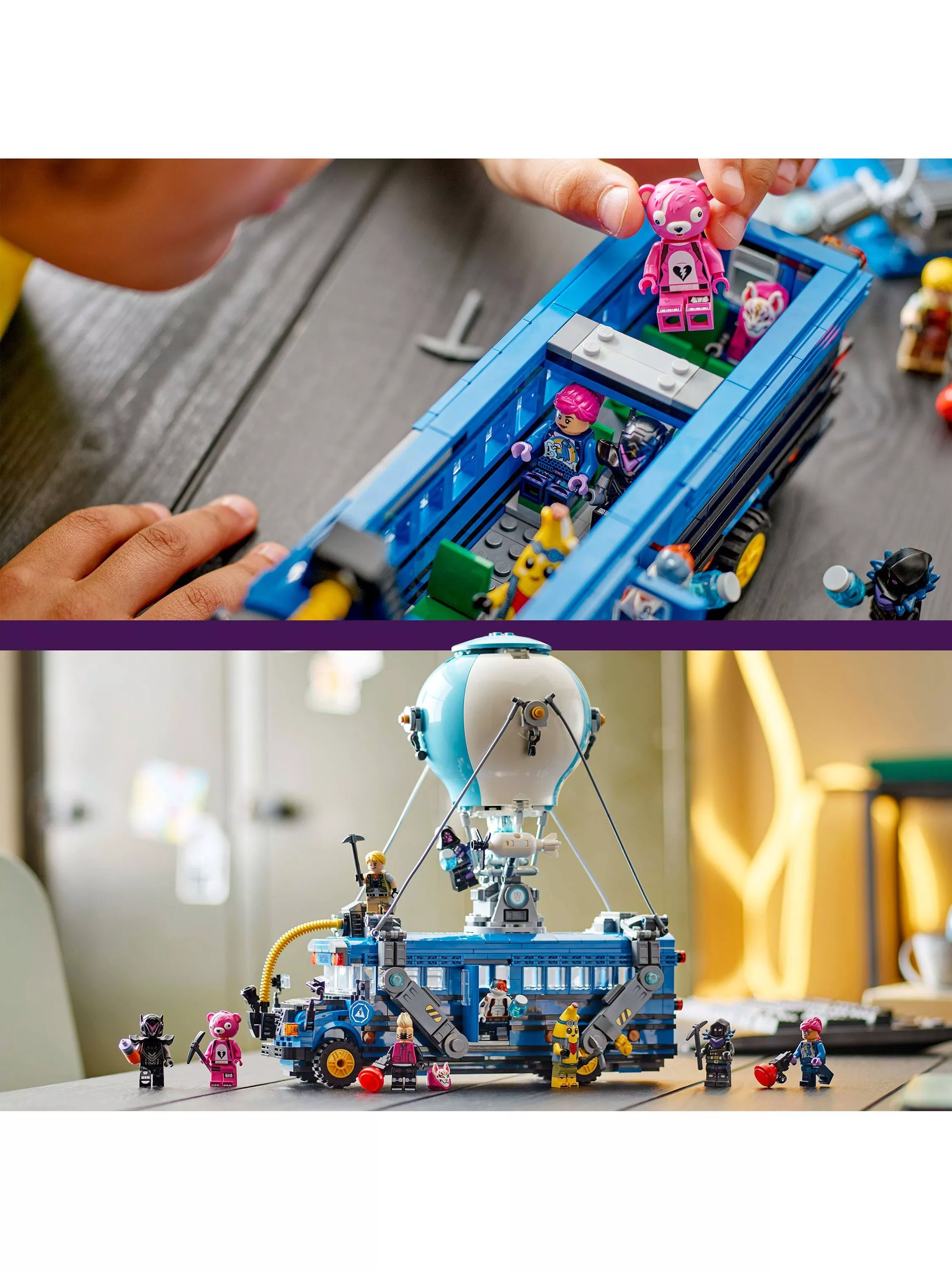 - •Fortnite themed LEGO Battle Bus with hot-air balloon canopy