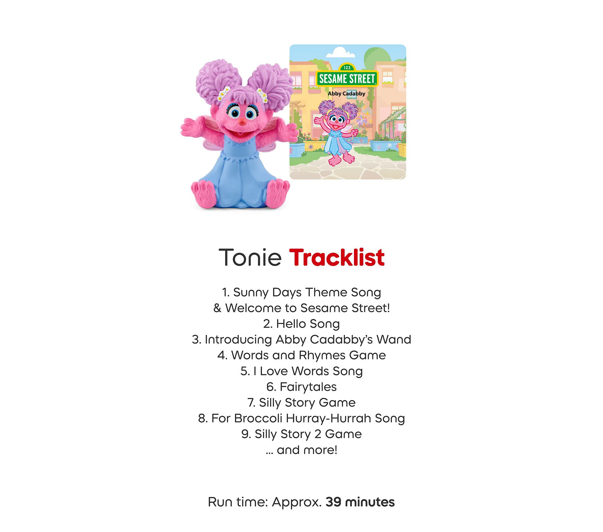 Build their Tonies collection with this set of three figurines compatible with the Toniebox (sold separately). Includes Abby Cadabby, Cookie Monster, and Elmo. This Sesame Street Tonies 3-Pack offers songs and stories designed to spark curiosity and imaginative play. Suitable for children ages 3 and up. Base is made of ABS plastic with electronic components. Wipe clean. Imported.